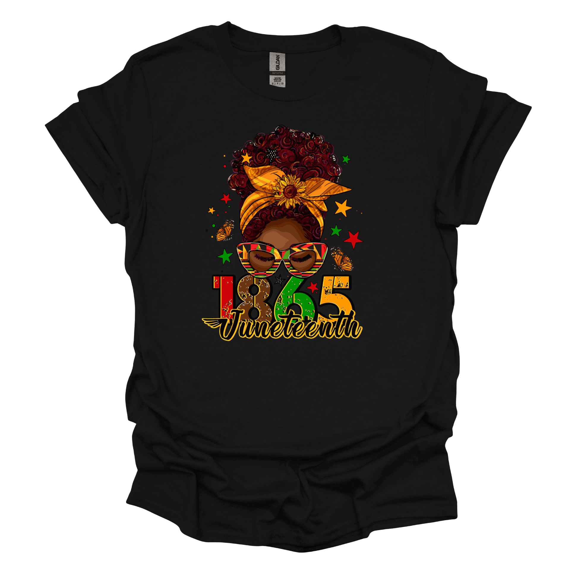 1865 Juneteenth Empowerment Tee - Woman with a Radiant Messy Bun